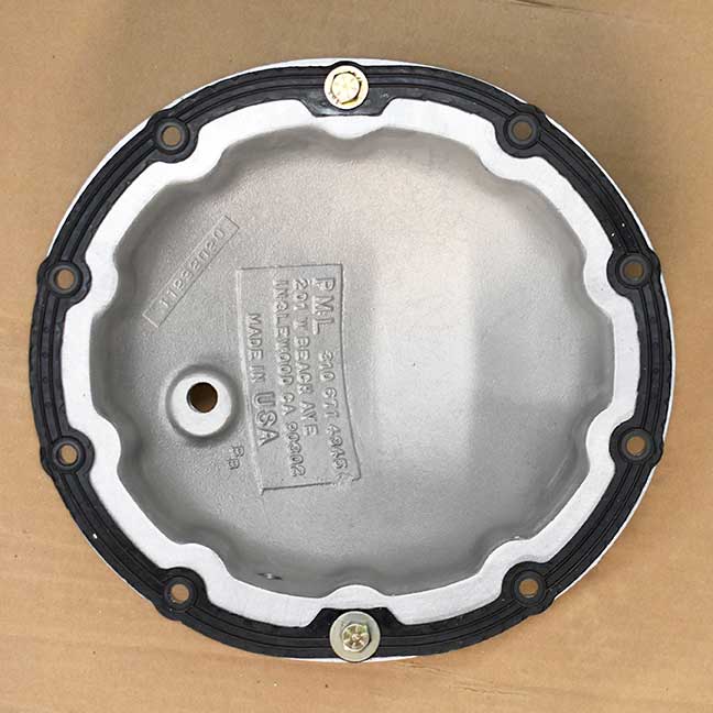 This PML cover has a curved back shaped similar to the factory stock cover. This picture of the inside shows the stock gasket bolted on to verify the bolt hole positions.