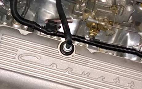 PCV valve installed on PML big block Chevy valve cover with grommet