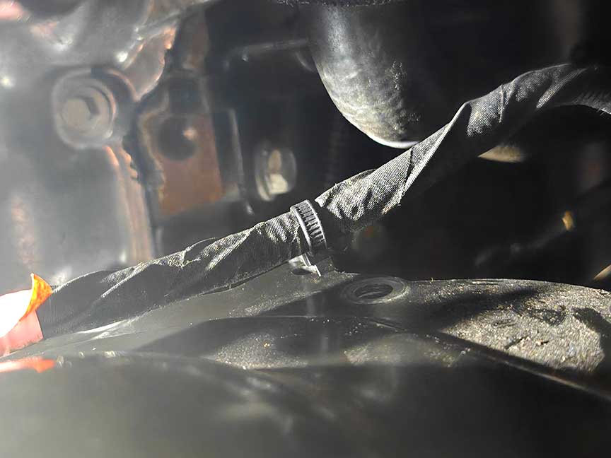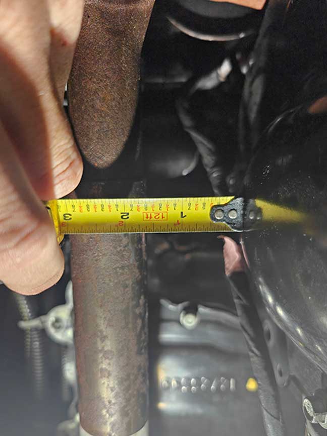 Sterling installed this PML front differential cover on his 2024 GMC Sierra 2500HD with a Duramax diesel engine. He found that turning the wheels all the way to the left provided the maximum amount of clearance to access the cover. He put in 2.5 quarts of fluid. He let us know that even with the bigger PML cover, there was still plenty of room for the steering components. Two pictures below show distance to sway bar with stock cover and PML cover.
